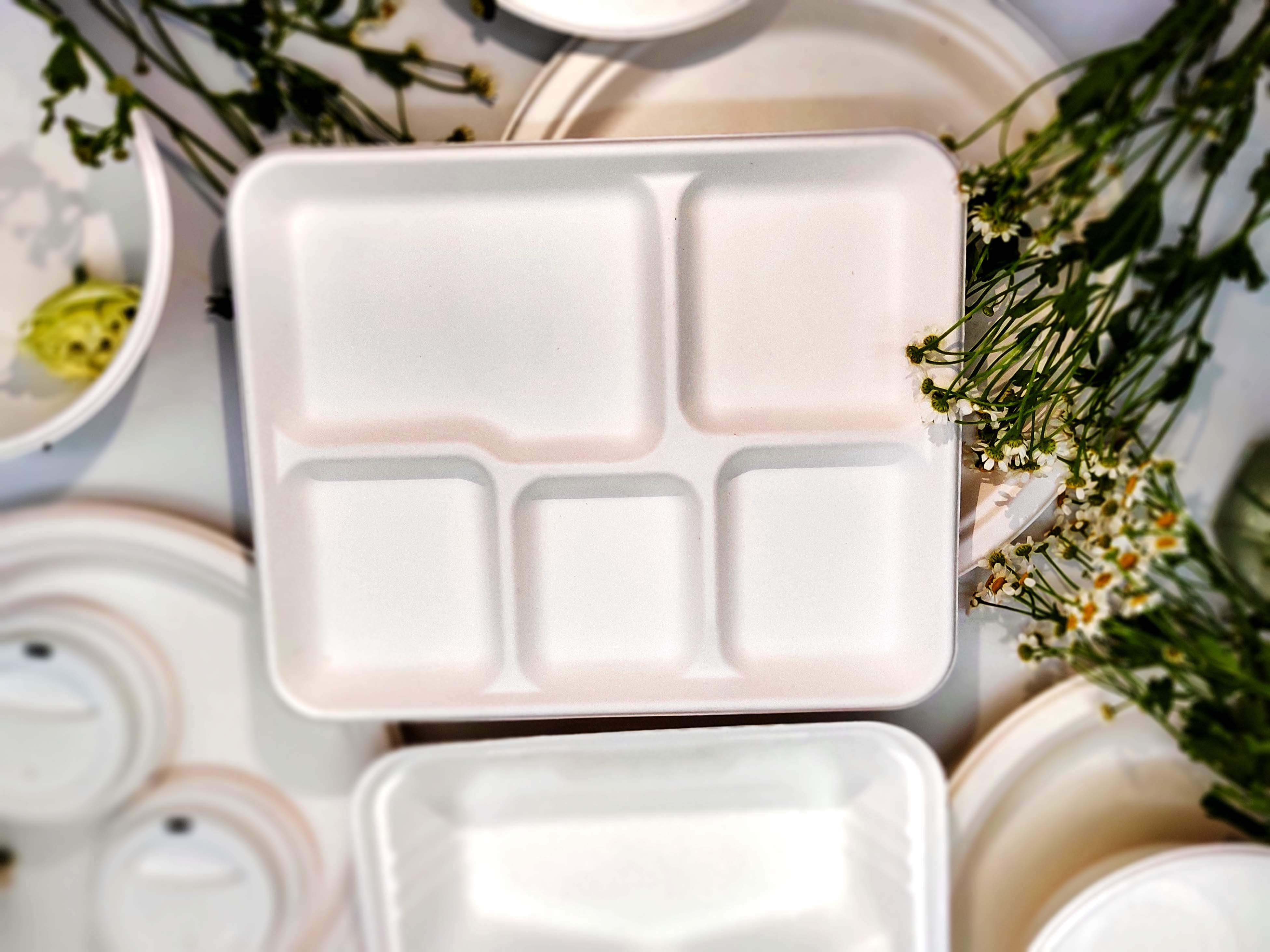 泰国工厂大量现货供应:纸浆模塑餐具;5格盘